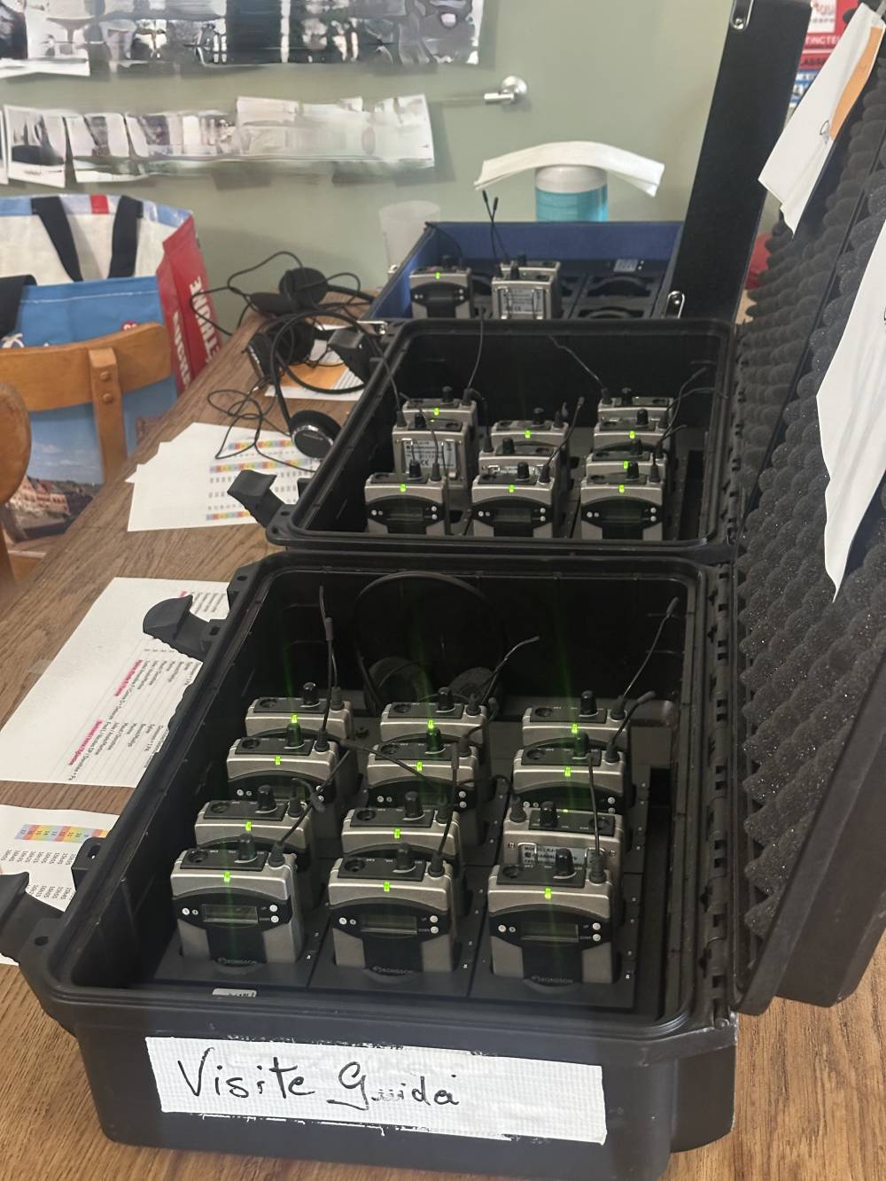 Nouveauté : Le matériel proposé permet aux participants du groupe de visiteurs de poser une question au guide. La question est entendue par tous , tout comme la réponse du guide.
